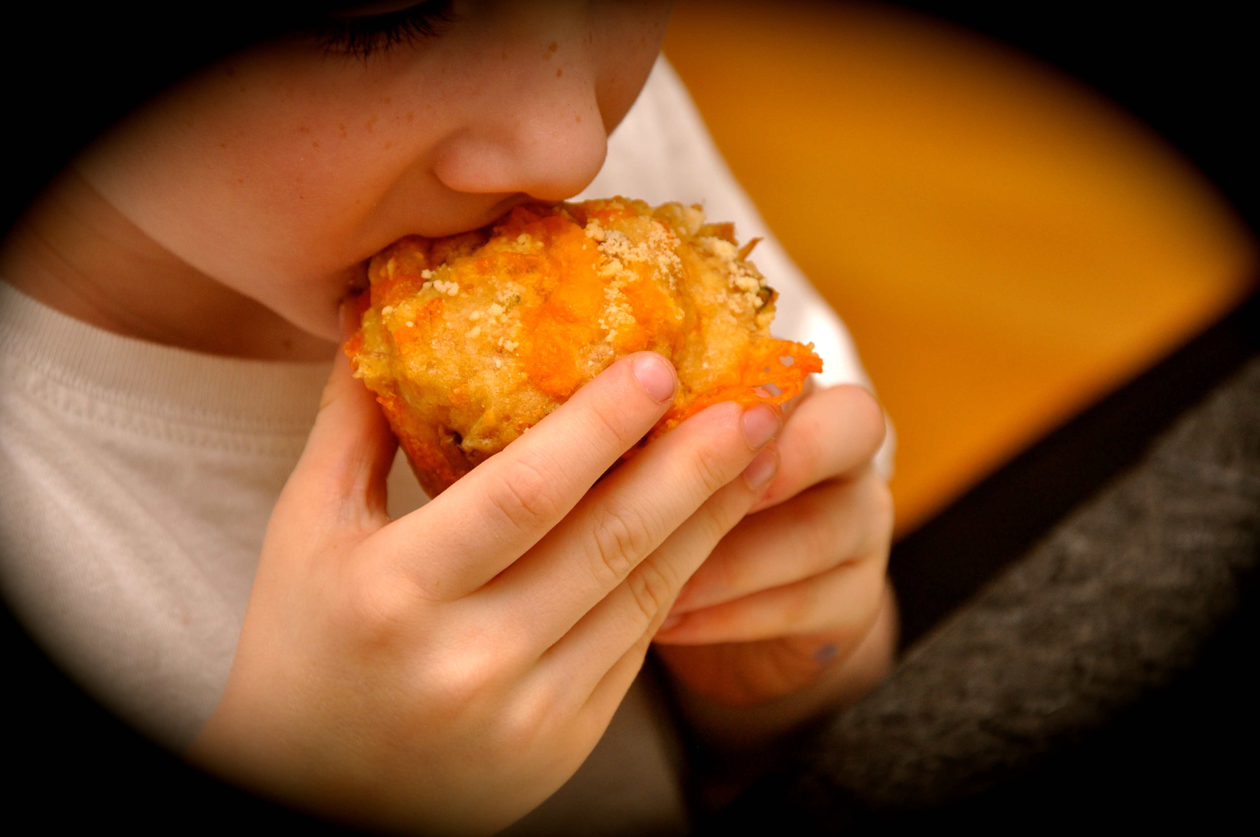The solution: Muffinize. Turn the classic sandwich into a muffin. Now you have a hand-held package that’s packed with protein, moist and almost as fluffy as Wonder bread. This cheesy muffin is oozing with cheese in an inner pocket and crisped to perfection on the buttery-tasting outside.