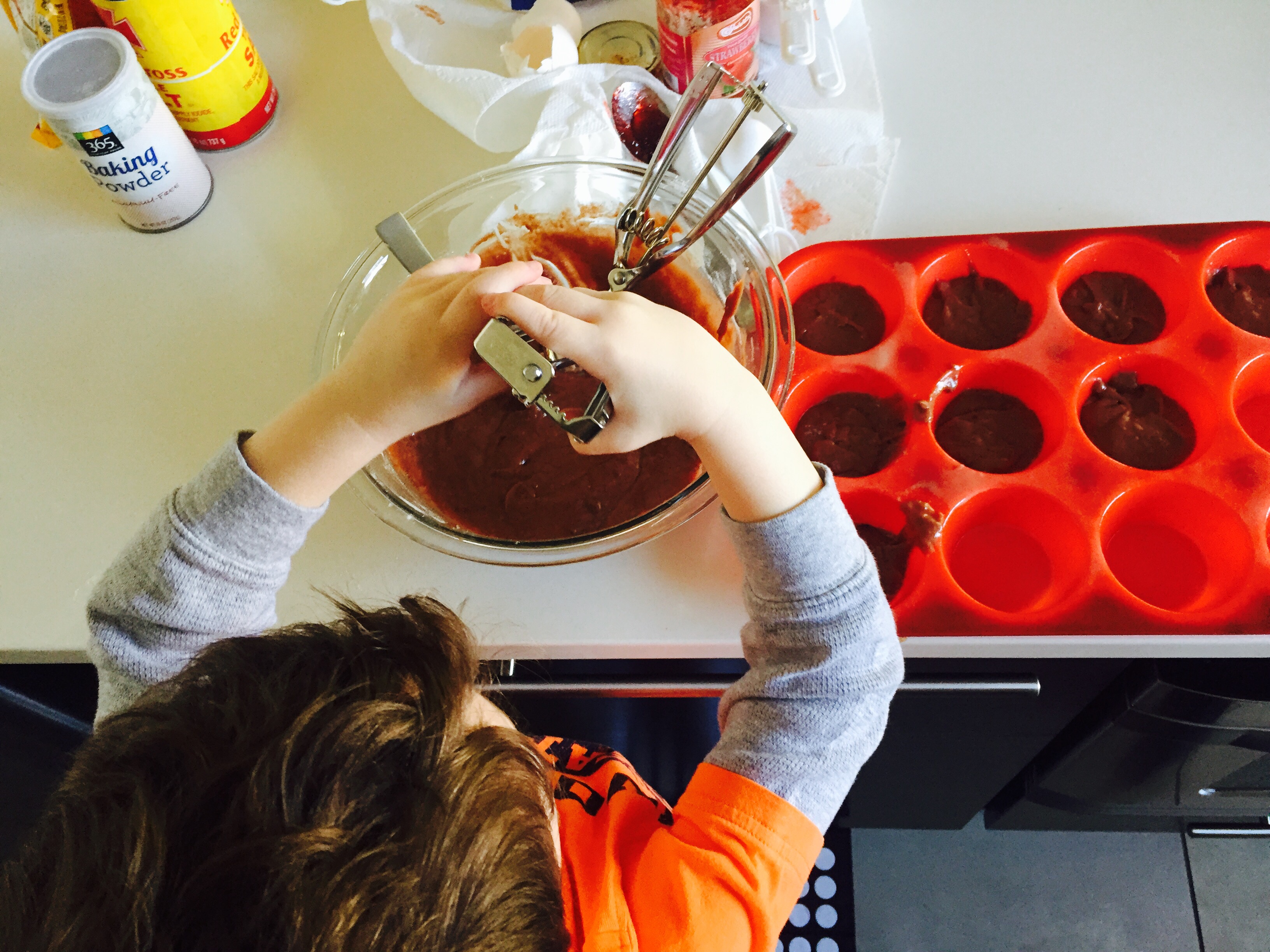 5. With an ice cream scoop, distribute batter evenly into muffin cups.