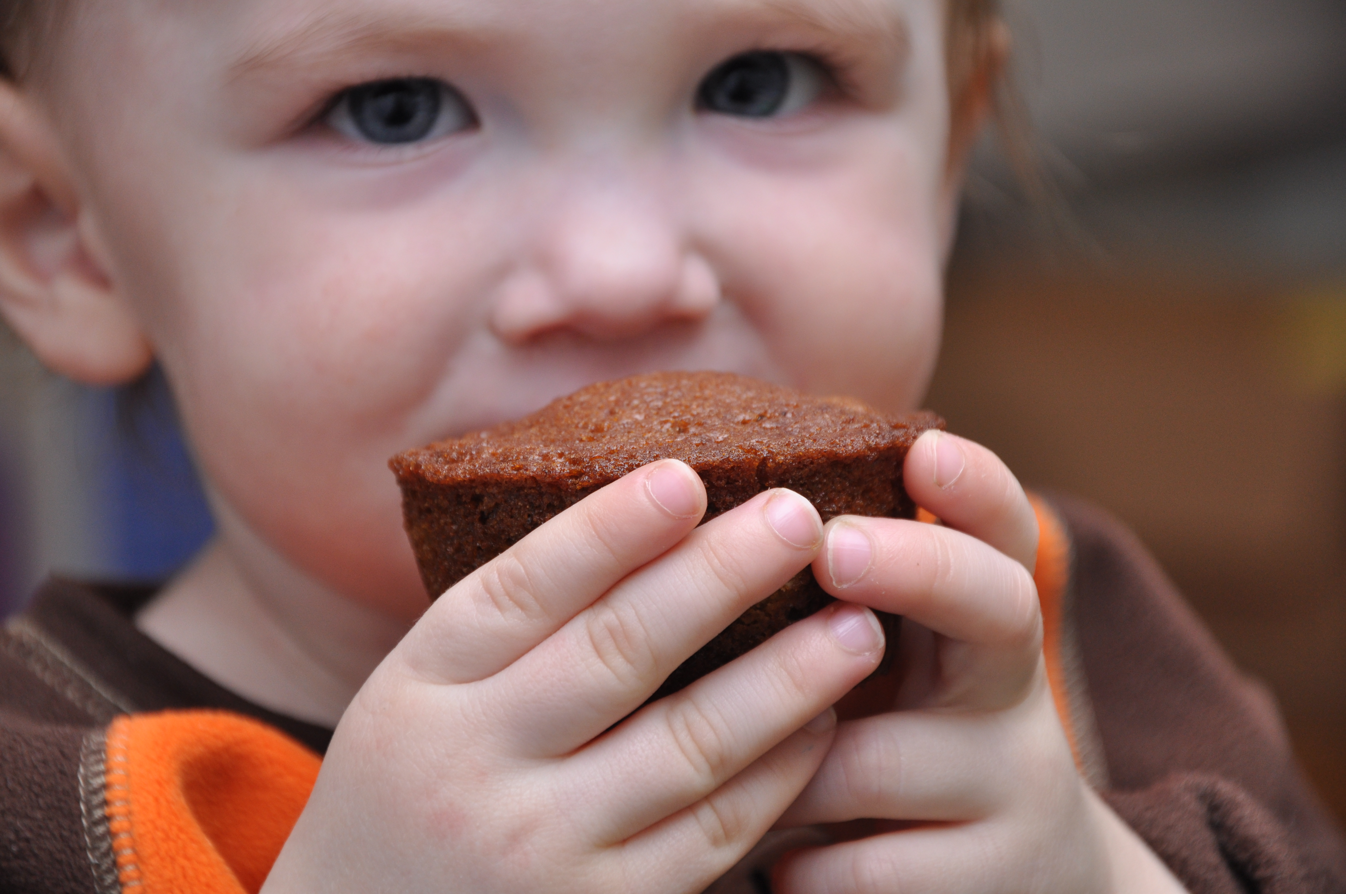 This recipe is a great way to use rotten bananas. These muffins have plenty of potassium and not a lot of sugar. Plus, as you can see, for the toddler, they are much easier to eat than peeling and eating an actual banana!