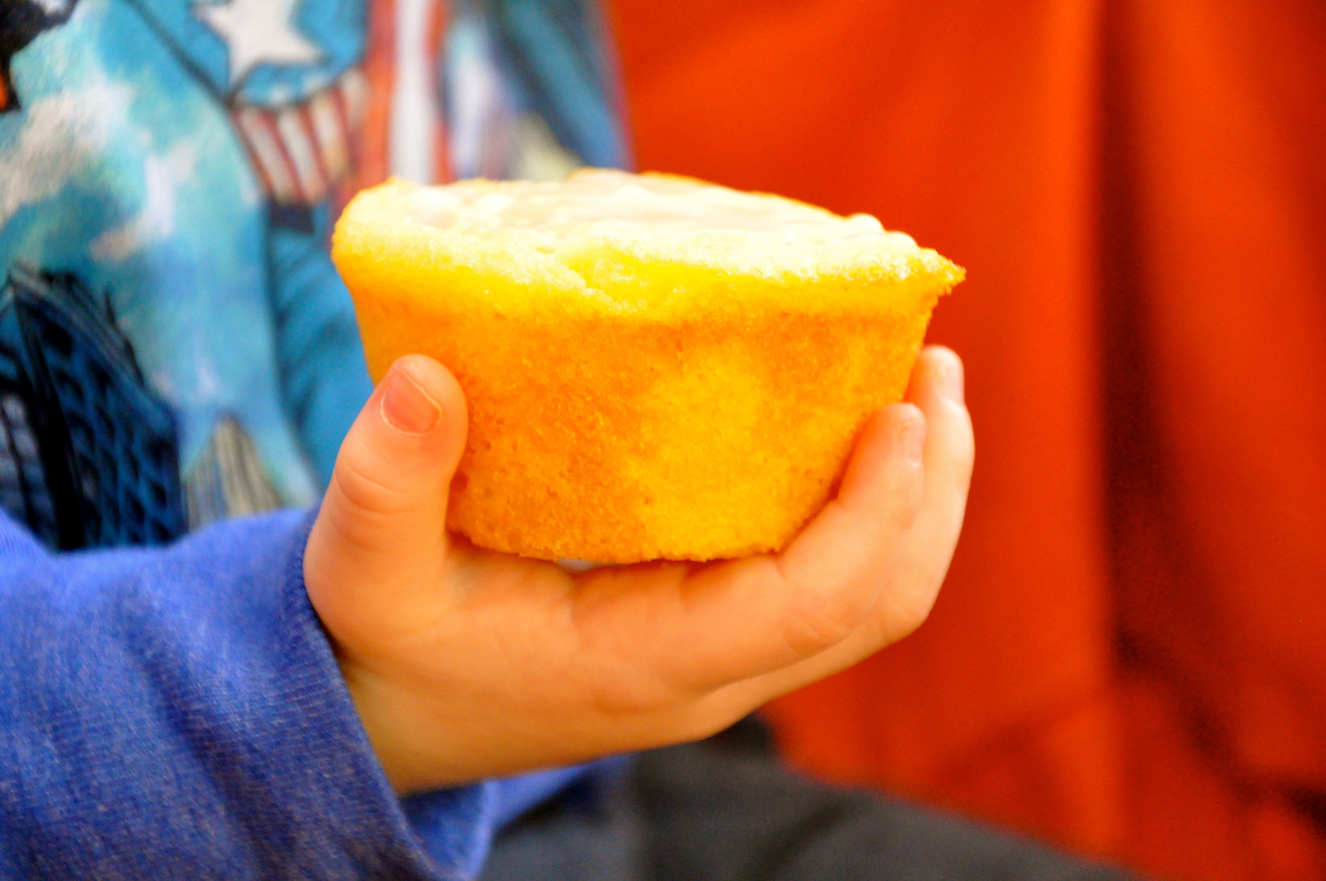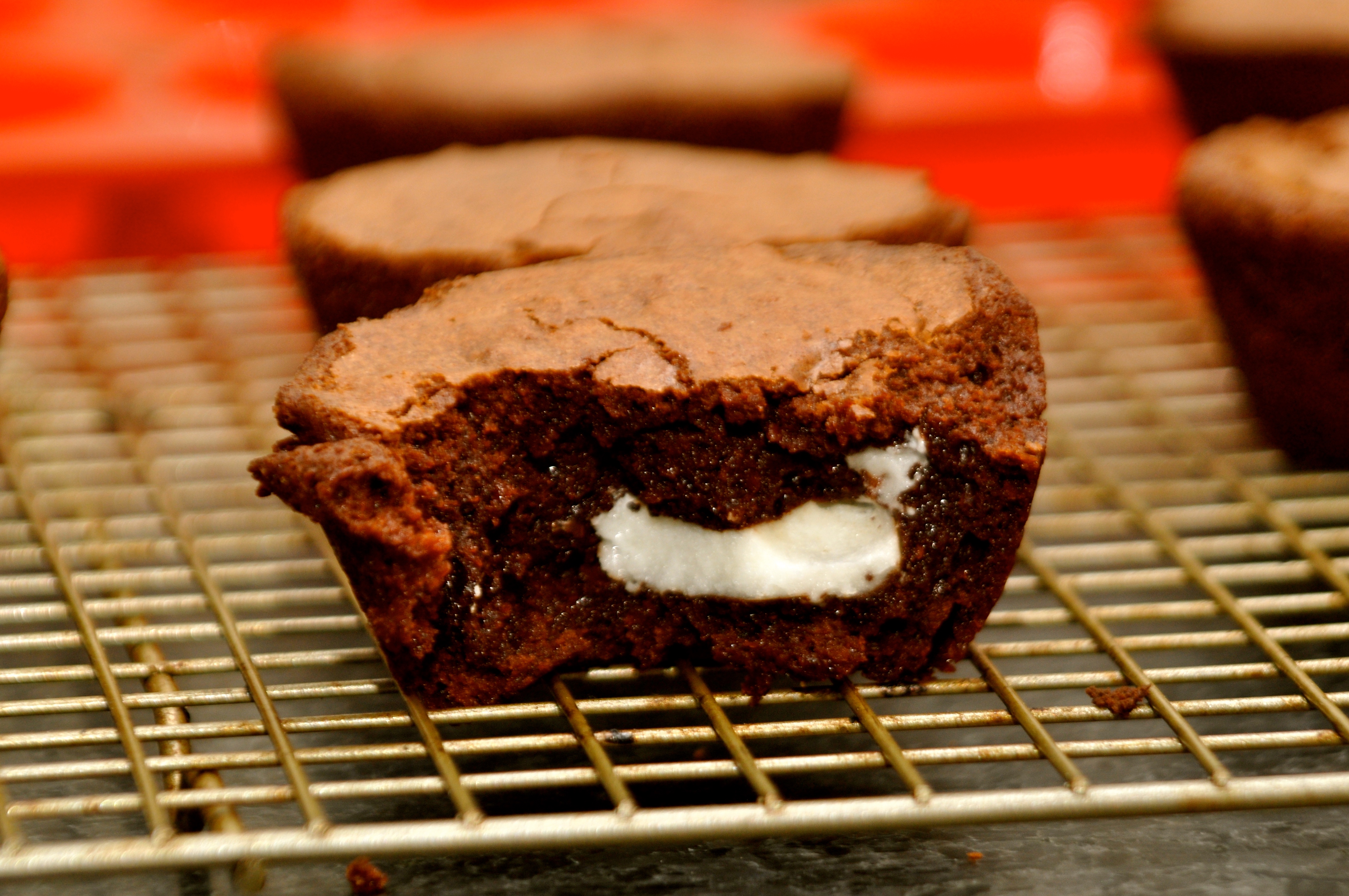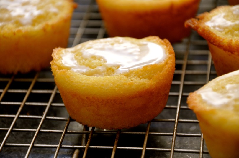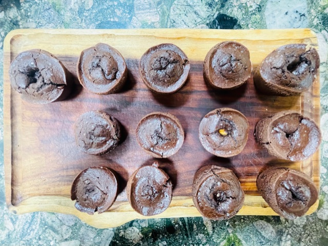 9. Bake for 20 minutes, until a knife or toothpick inserted in a muffin (avoiding the caramel) comes out clean.
